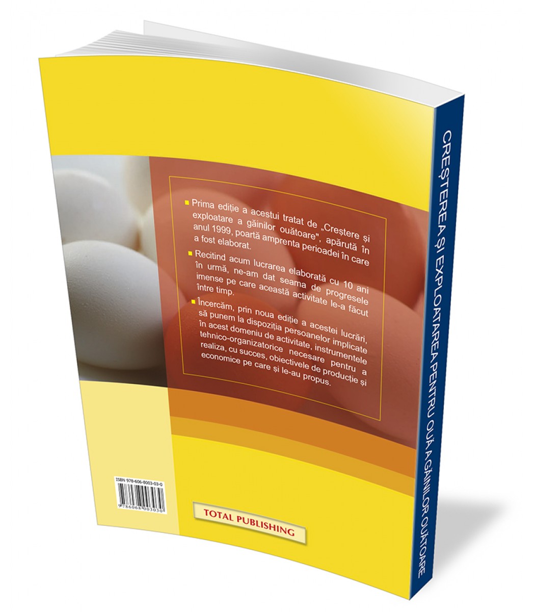 Prima ediție a acestui tratat de „Creștere și exploatare a găinilor ouătoare", apărută în anul 1999, poartă amprenta perioadei în care a fost elaborat. Încercăm, prin noua ediție a acestei lucrări, să punem la dispoziția persoanelor implicate în acest domeniu de activitate, instrumentele tehnico-organizatorice necesare pentru a realiza, cu succes, obiectivele de producție și economice pe care și le-au propus.